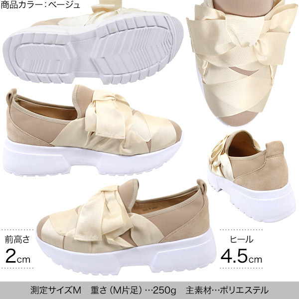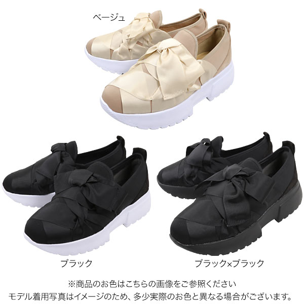 スニーカー レディース ボリュームリボンデザインスニーカー [I1999]【入荷済】 レディース シューズ 厚底 黒 ベージュ スリッポン リボン 靴 母の日 花以外