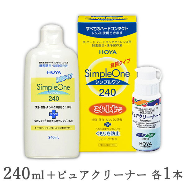 シンプルワン 240ml 1本セット(ピュアクリーナーH 30ml 1本付き)HOYA ホヤ 洗浄・保存・タンパク除去が行える洗浄保存液、クリーナーのセット