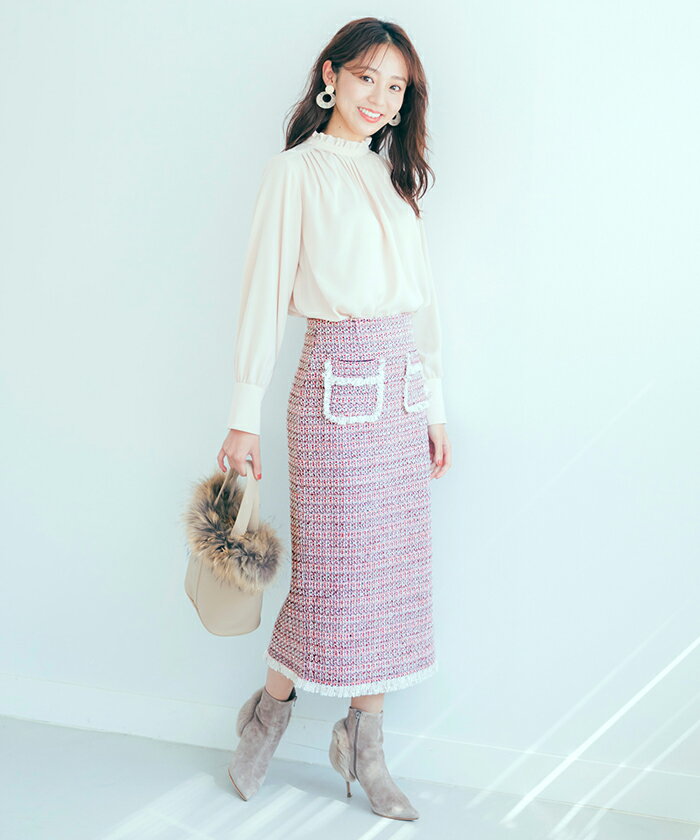 ・・合わせたアイテムはこちら・・ ボトルネック バルーン袖 ニット ボンディング バックフリル パーカー 商品の特徴 デザイン- ロングシーズン活躍できる主役級なツイードタイトスカート♡ 品の良い長めな丈で大人な印象に。