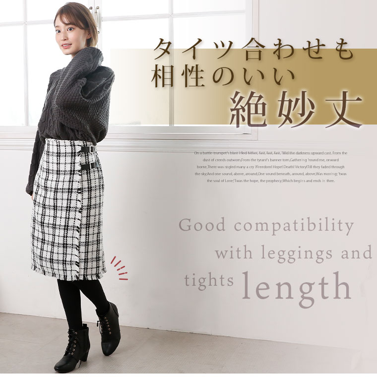 【セール限定クーポンMAX15%OFF】 大きいサイズ レディース スカート | ツィード素材 ラップ風 スカート _ ボトムス ラップスカート LL 3L 4L 冬 冬物 冬服 ぽっちゃり ゆったり ベルト付き かわいい おしゃれ カジュアル ナチュラル [530826] OMMBT