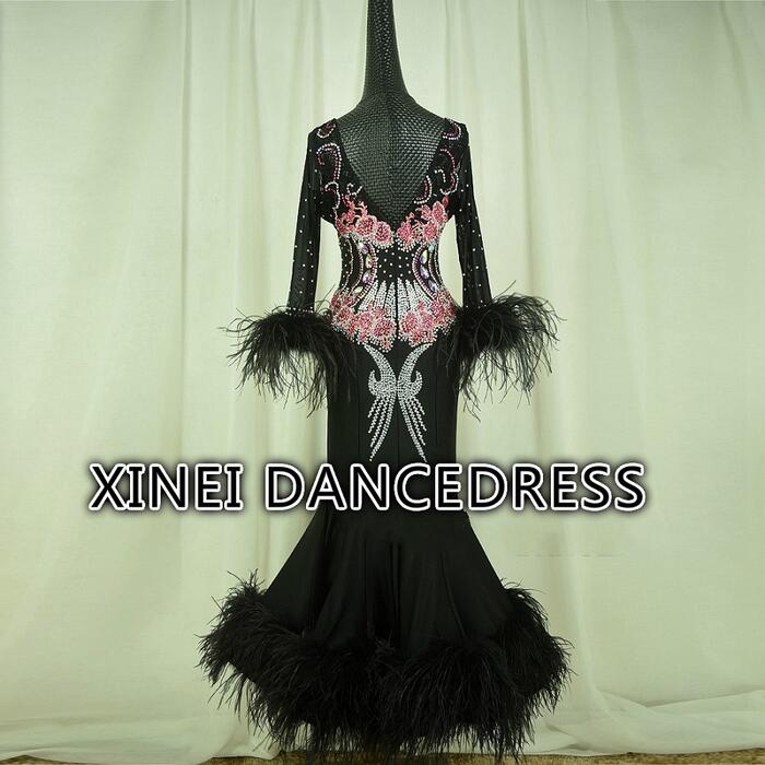 【受注生産・セミオーダー】社交ダンスドレス ダンス衣装 発表会 ステージ衣装 モダンドレス ラテンドレス スカート 競技用 デモ用 練習用 ワルツドレス ワンピース パーティードレス ダンスウエア トップス スタンダードドレス MK055 【XINEI】