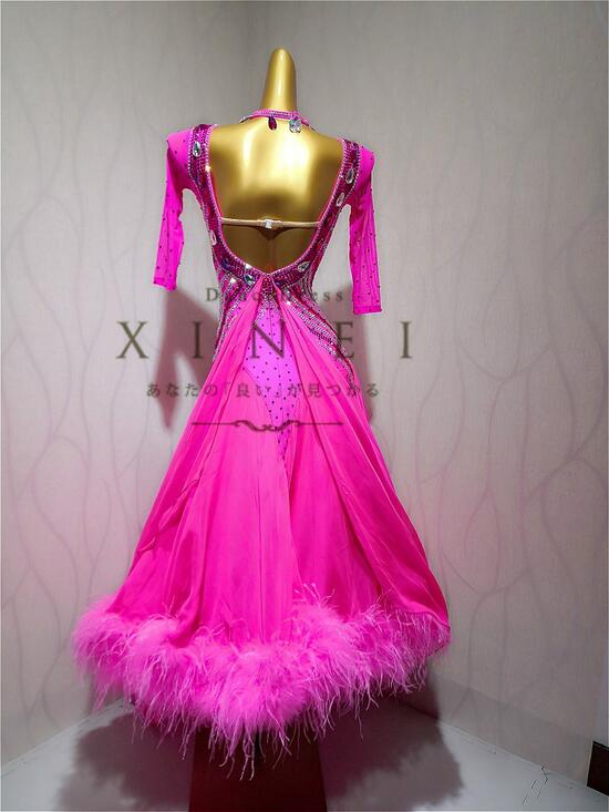 【受注生産・セミオーダー】社交ダンスドレス ダンス衣装 発表会 ステージ衣装 モダンドレス ラテンドレス スカート 競技用 デモ用 練習用 ワルツドレス ワンピース パーティードレス ダンスウエア トップス スタンダードドレス MK080 【XINEI】