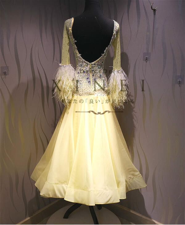 商品説明 素材 ライクラ(伸縮性あり)、ラインストーン、ホースヘアー、オーストリッチファー 他 仕様など ファーのお袖がカワイイ!明るいイエローはフロア映えするので人気があります。