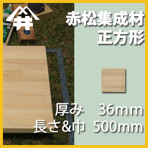 【巾、長さカット無料!】 赤松カット集成材(正方形) サイズ:厚み36mm×巾500mm×長さ500mm/木目がはっきりとした木材。/木材/カット無料/板/無垢集成材/DIY/日曜大工/木工/天板/こたつ/正方形